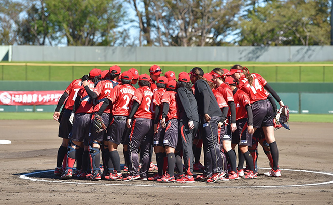 トヨタ自動車女子ソフトボール部レッドテリアーズの創立は、1948年。女子ソフトボールリーグに第一回から参戦する最古参のチームです。優勝を多数経験しており、2010年~2012年には、三連覇を果たしています。選手の数は毎年25名程度。高校、大学の強豪チーム出身の選手たちが、さらなる高みを目指してしのぎを削っています。