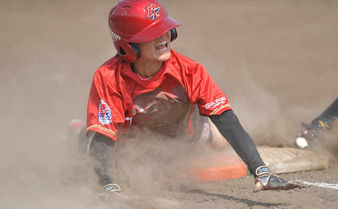 野球と比べて塁間が短く、コンパクトな競技場で行われるソフトボールでは、一瞬の判断ミスが命取りとなるため、正確でスピーディーな守備が求められます。また、ソフトボール特有の攻撃方法として注目してもらいたいのは、スラップ打法と言われる走り打ちです。俊足の左打者が少しでも早く一塁に到達するために使うケースが多く、ゴロを転がして内野安打を狙います。